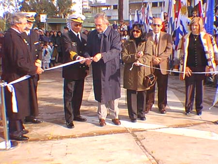 El Sr. Intendente de Canelones, Dr. Diver Fernández junto al Sr. Prosecretario General de la IMC, Sr. Nery Fernández, Prefecto de Canelones C/F Luis Jaunsolo y autoridades de la Armada Nacional, libran al uso público este nuevo espacio.